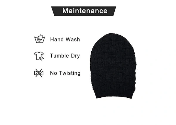 - Black beanie cap suits with allmost all clothing and it is very comfortable and durable. ; Wash Care: Hand wash recommended.