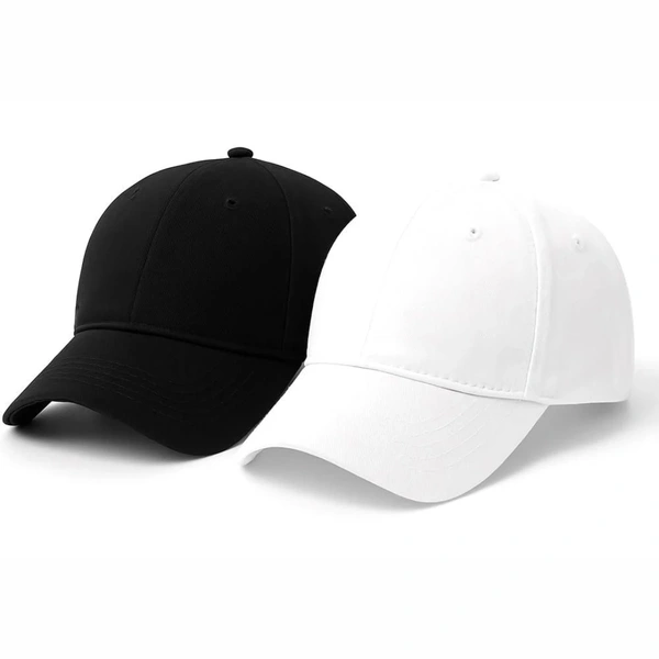 Plain Baseball Cap, Pack of 2, Black and White, Adjustable Unisex Sports Hat