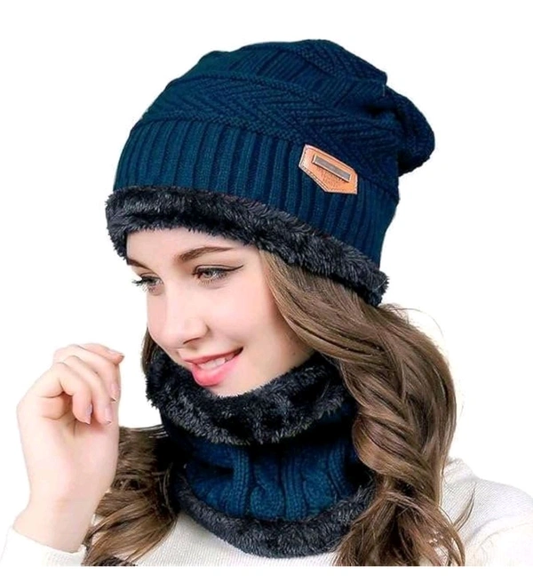 Premium Woolen Beanie Cap with Fleece Neck Warmer – Winter Protection Set for Men & Women