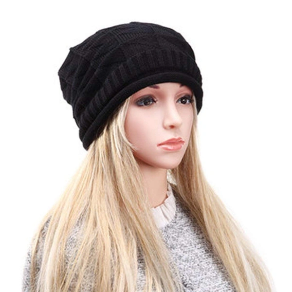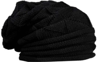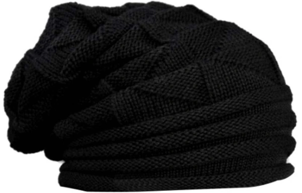 Unisex Black Knitted Beanie Cap – Winter Warm Woolen Slouchy Hat for Men & Women